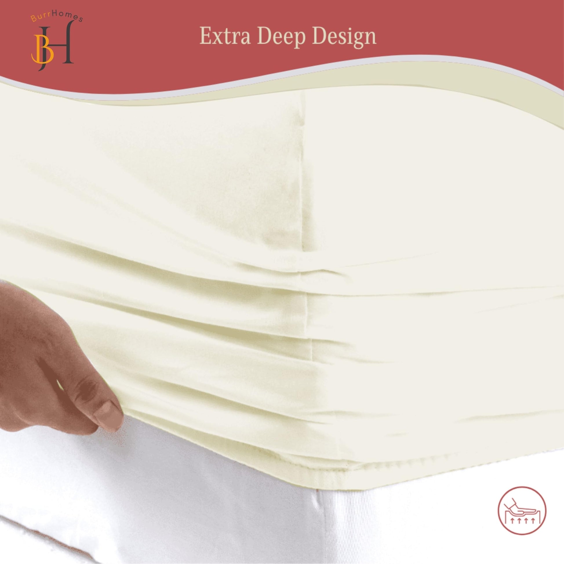 Burrhomes 500 Thread Count Long Staple Cotton Sateen Super Soft 100% Cotton Elastic Fitted Sheet Fits Upto 10 Inch Mattress with 2 Pillow Covers - Ivory